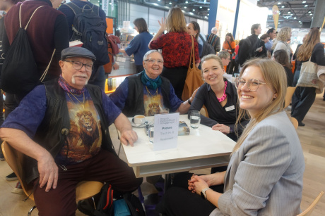 Am Stand des Heyne Verlags mit zwei reizenden Heyne-Damen