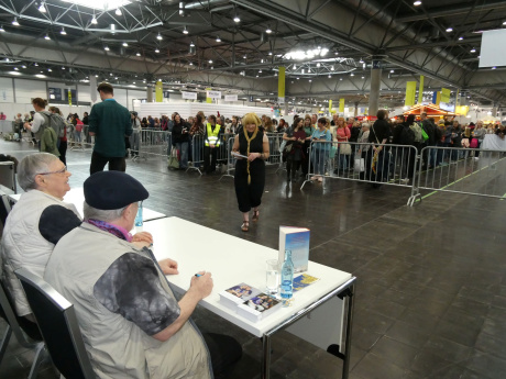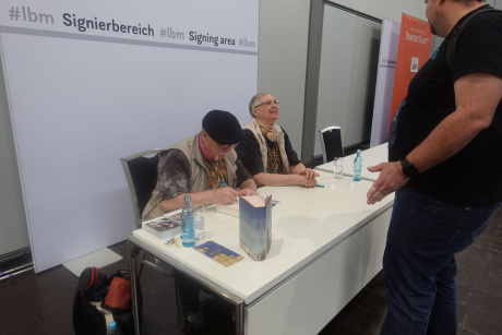 Während Elmar signiert, unterhält Iny sich mit den Fans